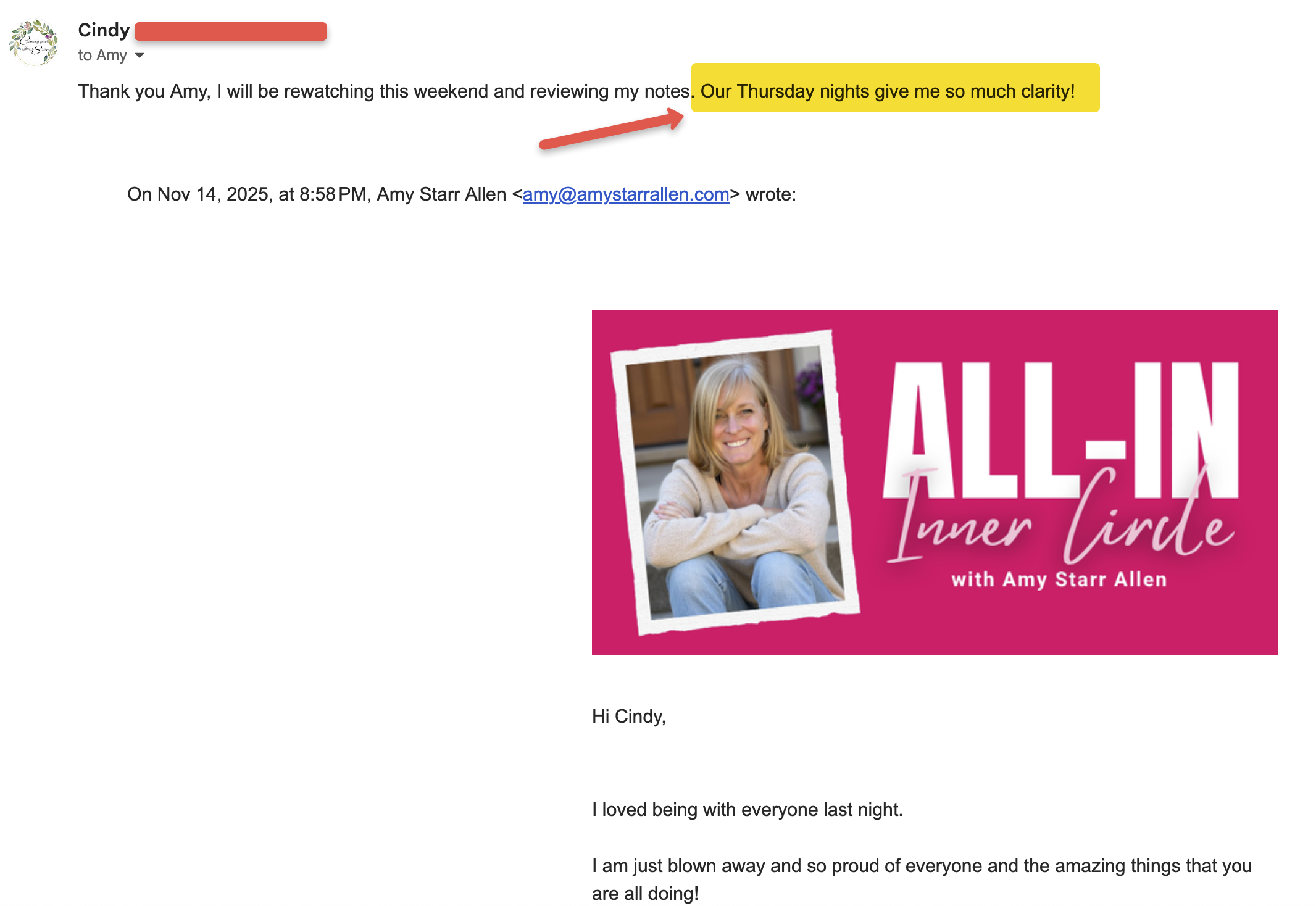 First, it happened on Thursday night. I was hosting my weekly Inner Circle Mastermind for my team, an intimate group coaching container where I coach and provide support for my team with whatever they need.