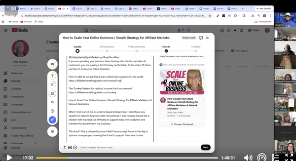 This week, I shared over my shoulder while I finished prepping my latest YouTube video to get it published. I shared how I use tracking code so that I know where each of my leads is coming from, and how I add cards, and an end screen to each of my videos. I also started a bit of my promotion process once the video went live