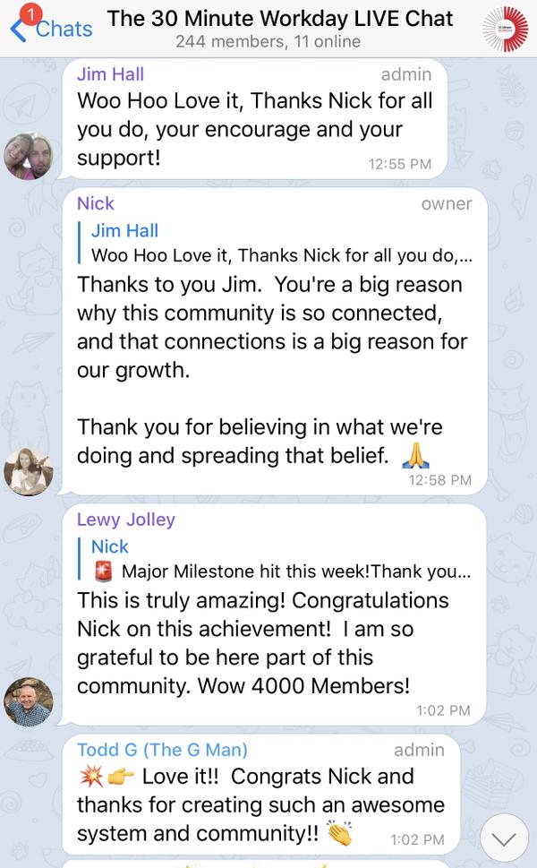 One of the things that is so unique about the 30 Minute Workday is the community. The leaders inside of this community are so unbelievably helpful... and they don't even need to be. They don't benefit financially or anything, this is not mlm or any type of multi-tiered payout... but people are going above and beyond to help each other inside of this community in a way that I've never actually seen before in all of my (15) years online.